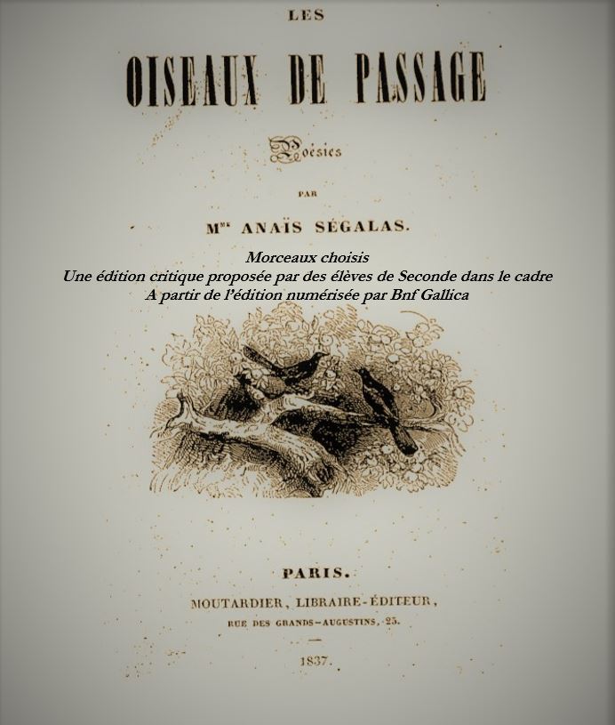 Ce nom ne vous dit probablement rien ! Pourtant cette poétesse était connue à son époque. Elle fait partie des nombreuses femmes dont l’histoire n’a pas voulu retenir le nom. Quelques élèves de Seconde ont voulu la réhabiliter en faisant découvrir certains de ces poèmes. Découvrez quelques morceaux choisis de son recueil Les Oiseaux de Passage publié en 1867 et republié en 2019 aux Editions Vaucanson !