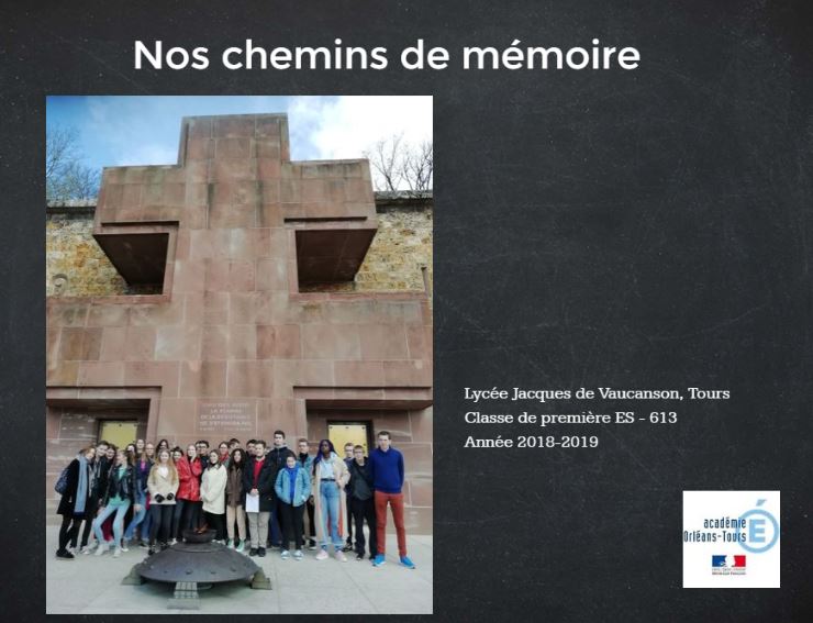 Tout au long de cette année scolaire, les élèves de Première ES 613 ont entrepris leurs chemins de mémoire autour de la Seconde Guerre mondiale. Un projet mené en Histoire et en Français dans et hors les murs du lycée. Vous pouvez feuilleter le livre numérique de ces "chemins de mémoire" en cliquant sur le lien ci-dessous : vous y découvrirez des photos, des lectures audio mais aussi des vidéos.