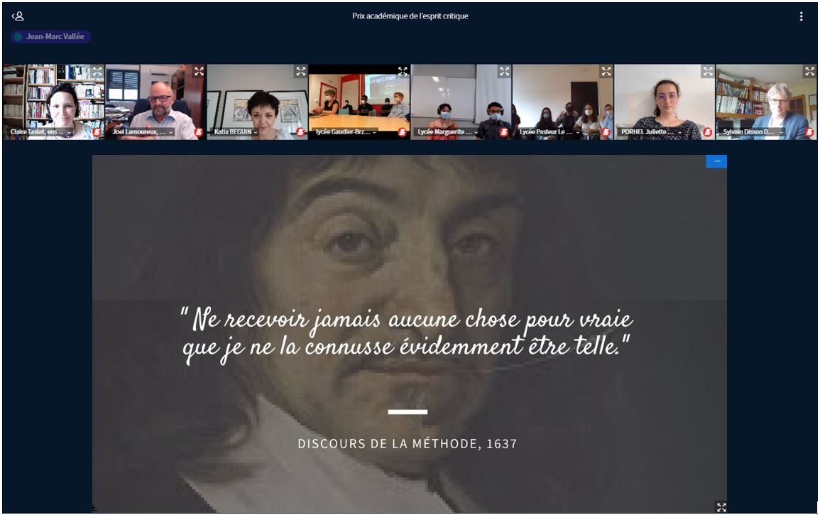 Le vendredi 18 juin s'est tenue la remise du prix académique de l'esprit critique. Les élèves de l'enseignement de spécialité Humanités Littérature et Philosophie de Première ont été récompensés par le jury et par Mme la Rectrice pour leur projet "La voix des femmes" qui vise à faire connaître les autrices que l'histoire a invisibilisées.